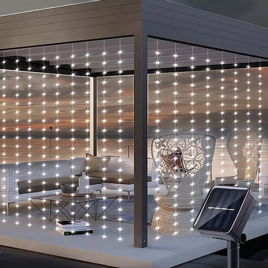Guirlande Lumineuse Rideau Solaire – Éclairage Extérieur LED Étanche pour Terrasse, Jardin et Mariage