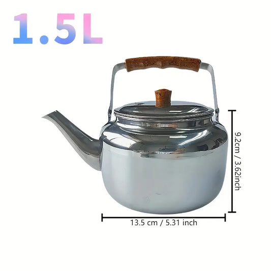 Théière en Inox avec Poignée Bois – Bouilloire Traditionnelle pour Café ou Thé – Compatible Tous Feux