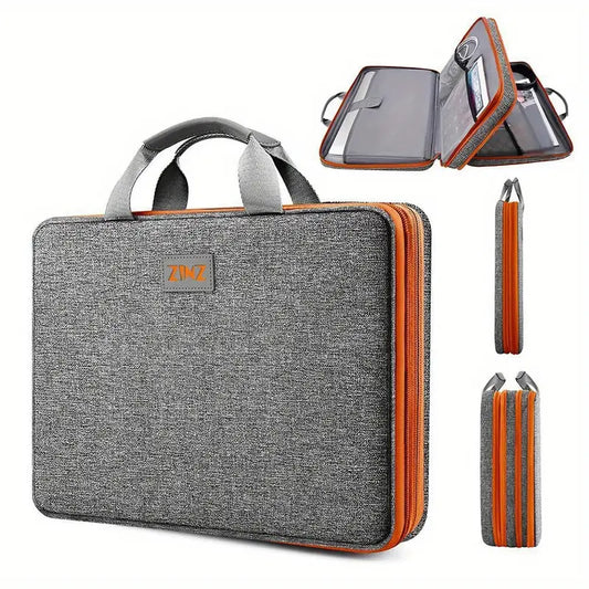 Mallette rigide pour ordinateur portable Sacoche de rangement étanche avec double fermeture éclair et poches organisées