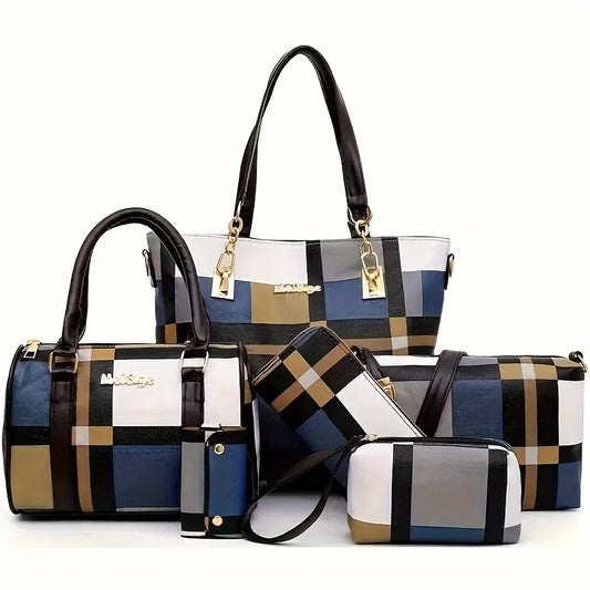 Ensemble de mallettes et sacs à main femme 5 pièces assorties à motifs carreaux, élégance et grande capacité