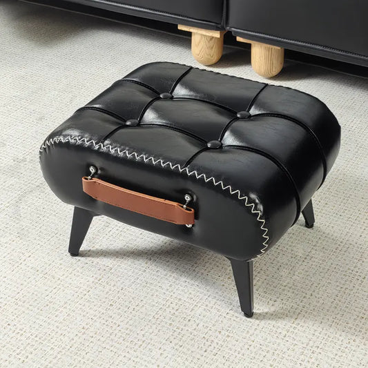 Tabouret Repose-Pieds en Similicuir avec Poignée – Pouf Multifonction pour Salon, Chambre et Boutique
