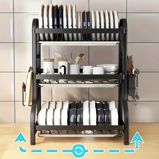 Égouttoir à Vaisselle 3 Niveaux en Métal – Support de Rangement avec Porte-Ustensiles et Égouttoir Intégré