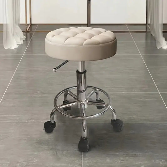 Tabouret de Travail à Roulettes Réglable – Siège Rembourré Pivotant pour Salon, Bureau et Atelier