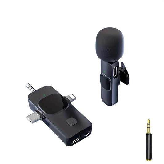 Micro Sans Fil Universel avec Récepteur USB-C/Lightning/Jack – Lavalier Rechargeable pour Smartphone, Caméra & PC