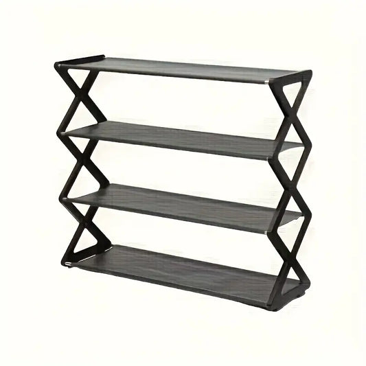 Étagère à chaussures design 4 niveaux en plastique noir – Rangement moderne et compact pour entrée, bureau ou dressing