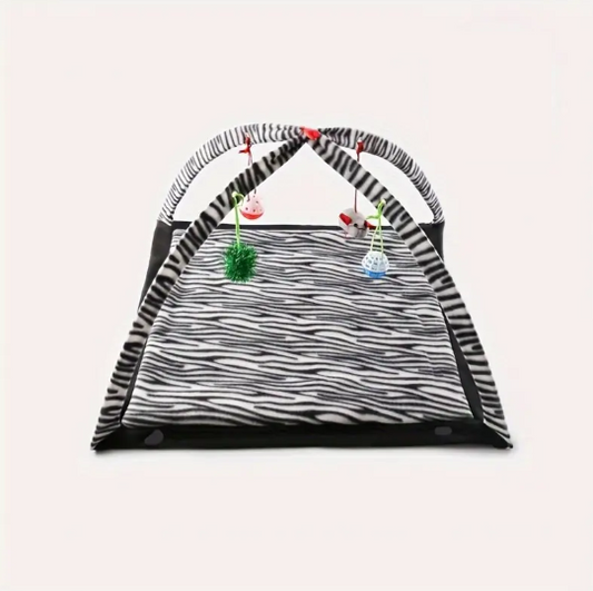 Tapis de Jeu pour Chat avec Arches et Jouets Suspendus – Aire d’Éveil Tigrée pour Divertissement et Repos