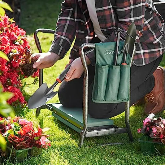 Tabouret de jardin pliable avec coussin et outils Siège agenouilloir confortable pour travaux de jardinage