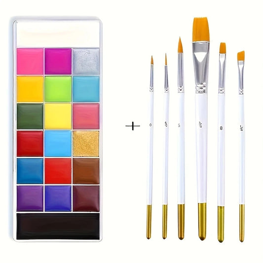 Palette Peinture Corporelle Artistique – 20 Couleurs Vives + 10 Pinceaux pour Maquillage Créatif