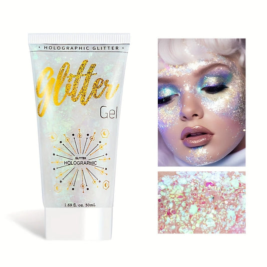Gel Pailleté Holographique Visage & Corps – Glitter Ultra Brillant pour Maquillage Festival