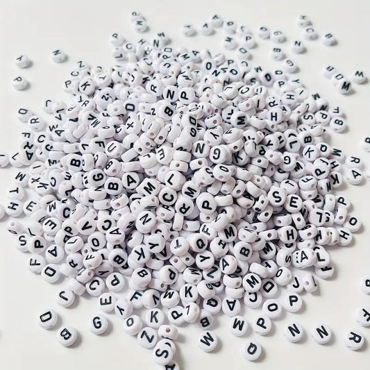 Perles Alphabet Lettres A-Z – Perles Rondes Blanches Multicolores pour Bracelets DIY et Création de Bijoux Personnalisés