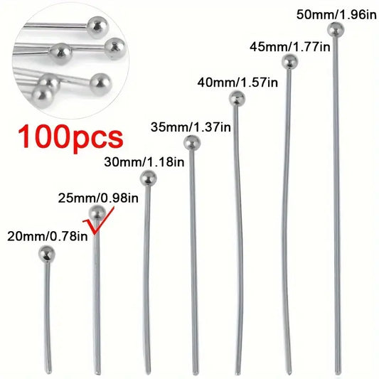 Tiges à tête boule en acier inoxydable – Fournitures DIY pour création de bijoux faits main