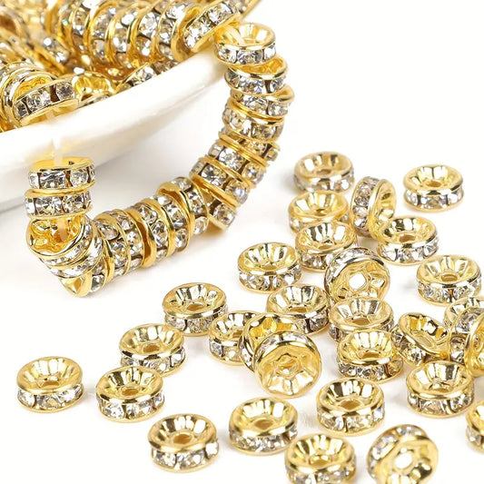 100 Perles Rondelles Strass Argentées – Intercalaires Brillants pour Création de Bijoux DIY