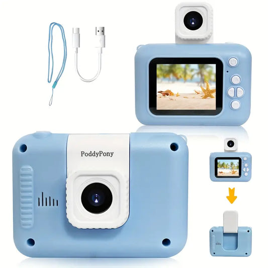 Appareil Photo Numérique pour Enfants PoddyPony – Caméra HD Rechargeable avec Écran et Objectif Amovible