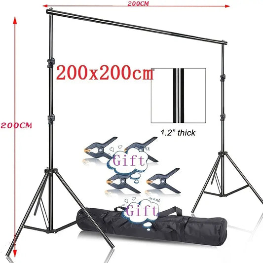 Kit Support de Fond Photo 200x200 cm avec Pinces et Sac – Trépied Réglable pour Studio Photo et Vidéo