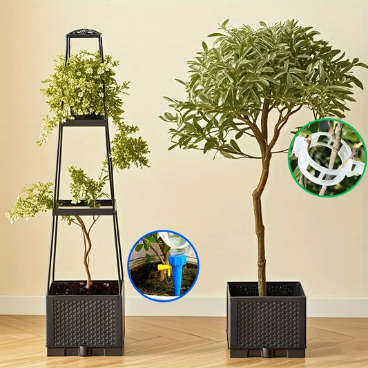 Kit Complet de Soutien et Arrosage pour Plantes – Pot Carré, Tuteur, Goutteur Automatique & Clips Inclus