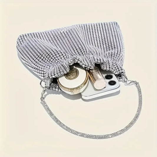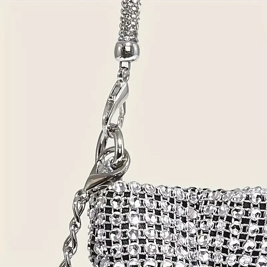 Pochette de soirée femme argentée – Sac chic à strass et bandoulière chaîne