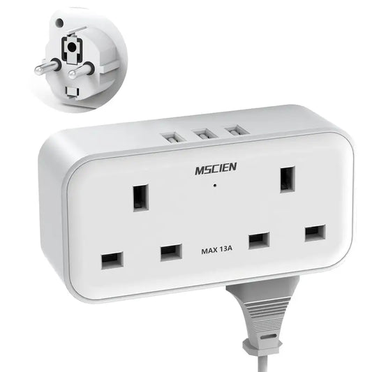 Adaptateur Prise Murale Universel avec 3 USB + 2 Prises Secteur – Chargeur Compact pour Maison et Voyage