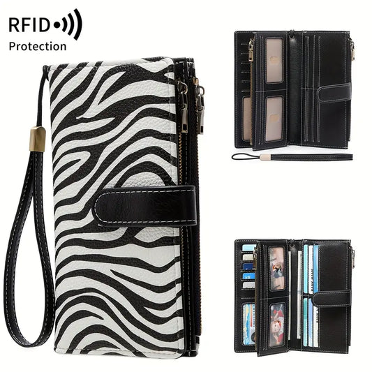 Portefeuille homme en cuir avec dragonne Multi-compartiments, fermeture zippée, élégant et pratique
