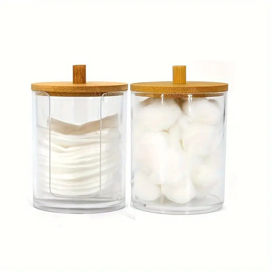 Bocaux de rangement salle de bain avec couvercle bambou – Organisateurs coton, cotons-tiges et accessoires