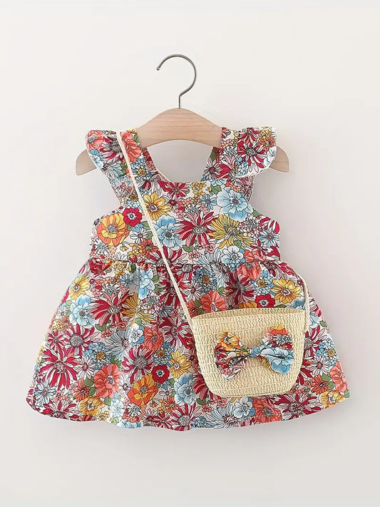 Robe Bébé Fille Fleurie avec Sac Assorti – Tenue Été Chic et Adorable