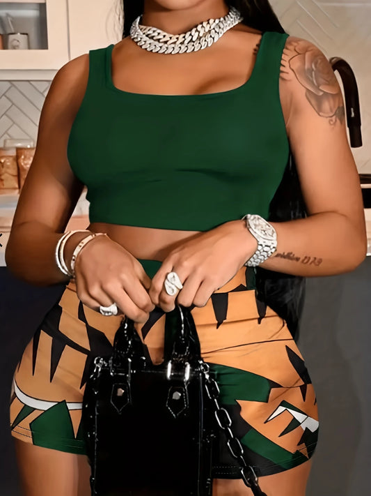 Short de Plage Femme Imprimé Graphique – Taille Haute Moulante, Style Sexy & Estival