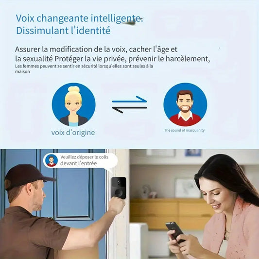 Sonnette Vidéo Intelligente Wi-Fi Tuya – Caméra HD, Alerte Smartphone, Haut-parleur Sans Fil Inclus