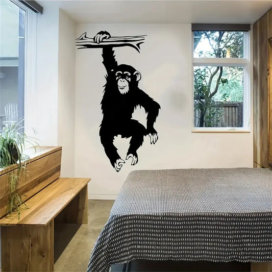Sticker mural singe suspendu – Décoration murale amusante pour chambre d’enfant ou salle de jeux