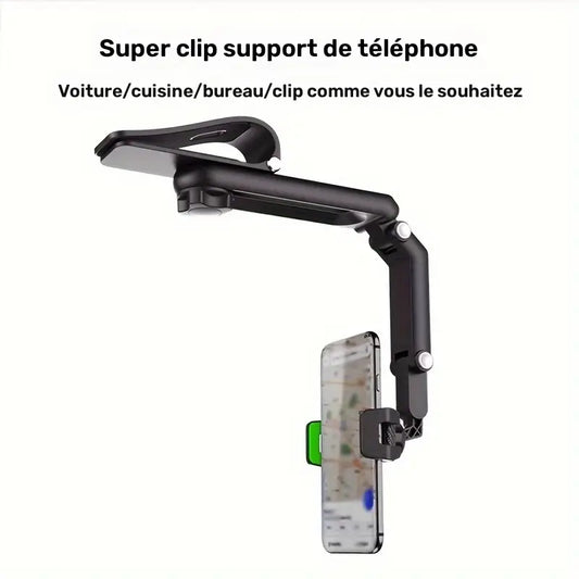 Support Téléphone Voiture Pare-Soleil – Rotation 360° Antidérapant pour GPS et Appels Mains Libres