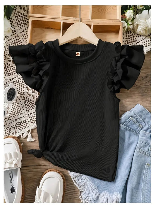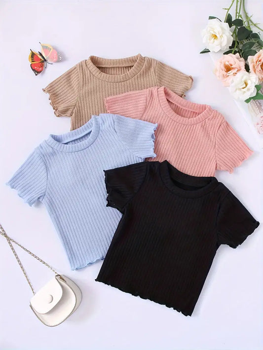 T-shirt Fille Côtelé Manches Courtes – Hauts Enfant Confortables et Tendance en Lot Multicolore