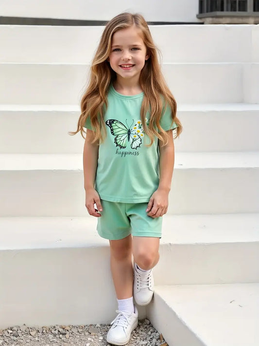 T-shirt Fille Papillon Imprimé – Haut Enfant Manches Courtes Confortable et Tendance Été