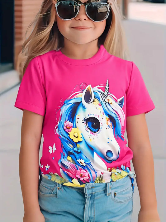 T-shirt Fille Licorne Colorée – Haut Enfant Manches Courtes Imprimé Fantaisie et Tendance