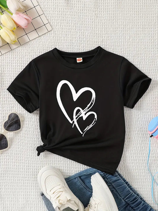 T-shirt Fille Manches Longues Motif Cœur – Hauts Enfant Coton Confortables et Tendance