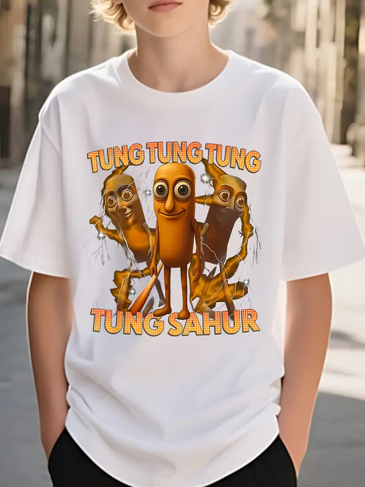 T-shirt Garçon Bleu Amusant – Motif Cartoon 3D Tung Tung Sahur