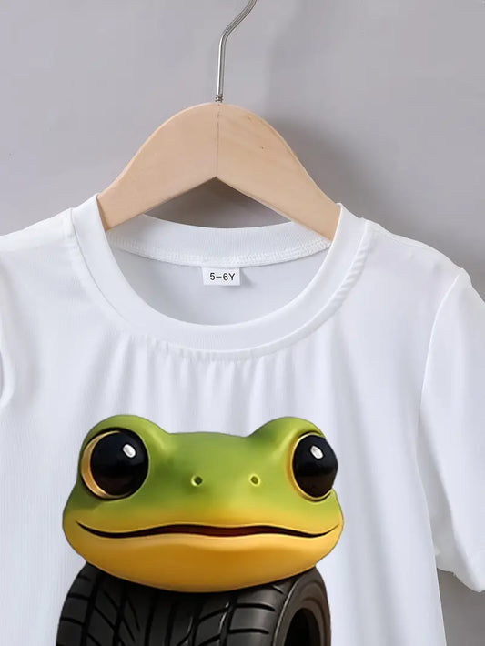 T-shirt Garçon Bleu avec Motif Dessin Animé Drôle – Haut Enfant Confortable et Original