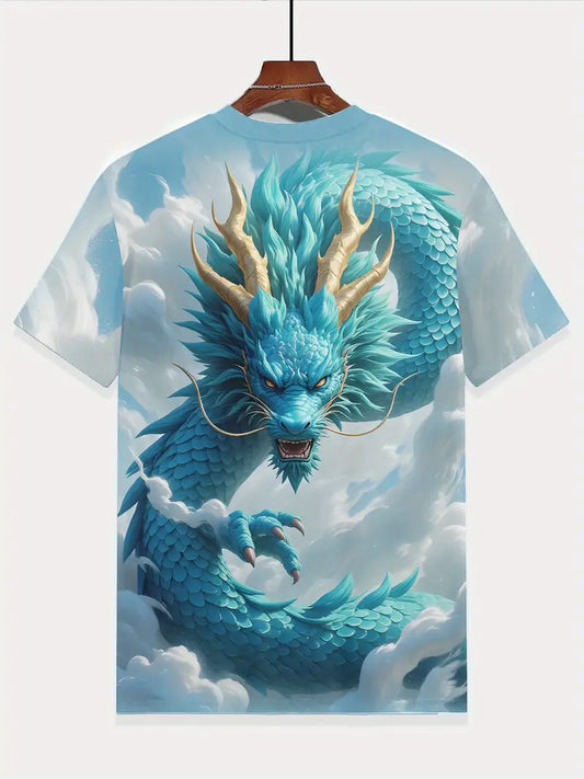 T-shirt Garçon Fantaisie Dragon Bleu – Motif 3D Écailles et Nuages