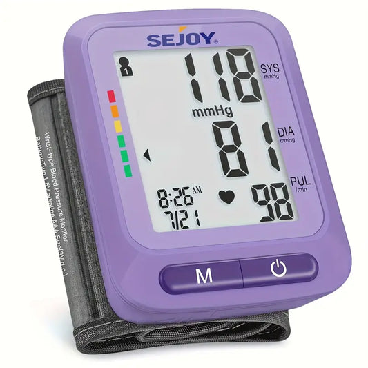 Tensiomètre Électronique Poignet SEJOY – Écran Large Haute Lisibilité | Design Violet, Mesure Précise Tension & Pouls | Indicateur OMS, Mémoire Intégrée – Facile à Utiliser