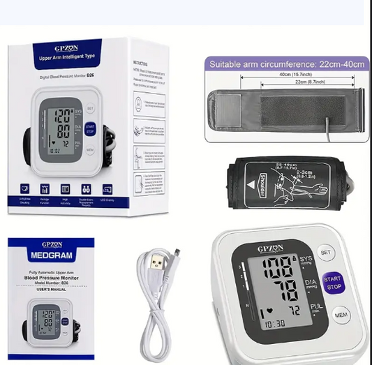 Tensiomètre Électronique Bras GPZON – USB Rechargeable | Grand Écran LCD, Brassard Ajustable 22-40 cm | Mesure Précise Tension & Pouls, Mémoire & Détection Cardiaque Automatique