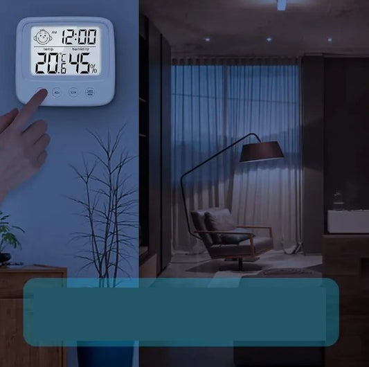 Thermomètre Hygromètre Numérique avec Horloge – Écran LCD Rétroéclairé | Mesure Précise Température & Humidité Intérieure