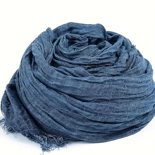 Écharpe homme bleu denim – Foulard long en coton léger avec finitions effilées