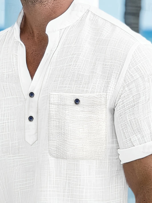 Chemise Homme Col Mao Décontractée – Manches Courtes Boutonnée, Style Estival Chic