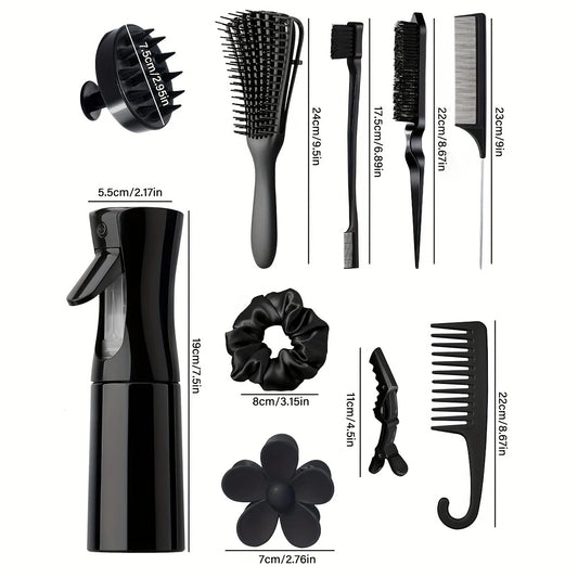 Kit Accessoires Cheveux 11-en-1 – Brosses, Peignes, Vaporisateur, Clips & Massage Cuir Chevelu