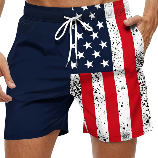 Shorts d'été homme - Motif de drapeau, taille élastique