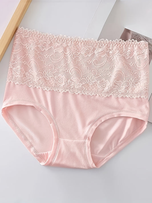 Lot de 4 Culottes Plus-Size Élégantes Taille Haute, Détail en Dentelle Contrastée