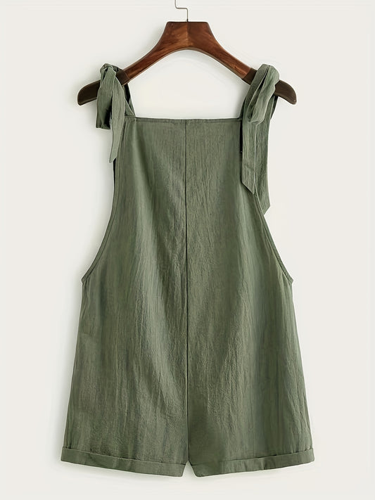 Combinaison Salopette Unie – Bretelles Nouées & Poches