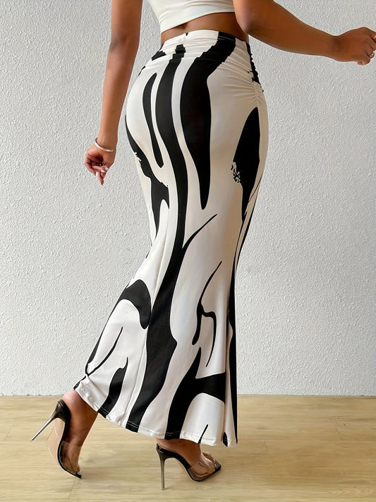 Jupe Évasée Imprimé Abstrait – Taille Haute