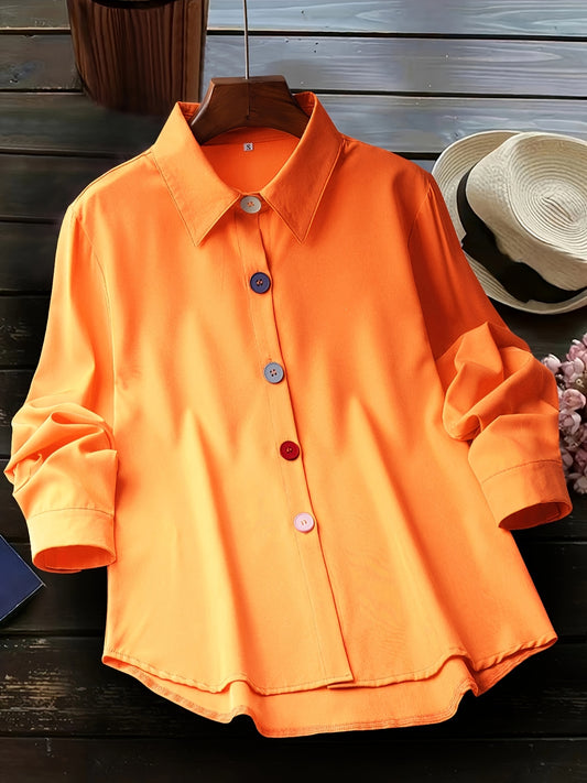 Blouse Femme Élégante Boutons Perle, Coupe Ajustée