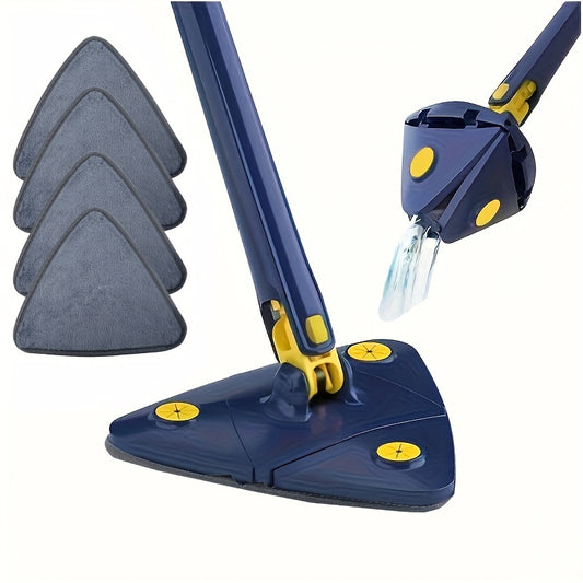 Serpillère Triangulaire avec 4 Tampons Microfibres Lavables – Manche Inox Durable