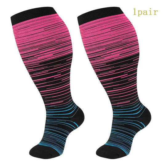 Chaussettes hautes de compression homme – Sport, course et voyage, motifs colorés dynamiques