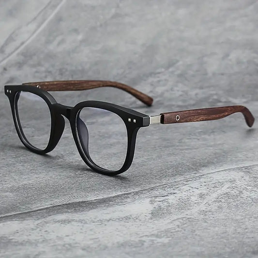Lunettes homme vintage – Monture carrée marron avec branches effet bois tendance