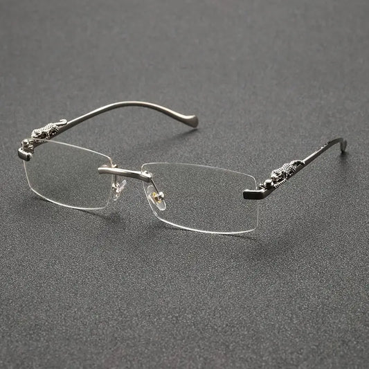 Lunettes homme sans monture – Design élégant avec branches métalliques argentées et détails gravés